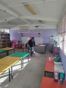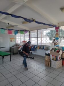 En esta ocasión, personal del área, bajo la coordinación de Emmanuel de Jesús Cisneros Ramírez, realizó trabajos preventivos en el Jardín de Niños “Eva Sámano” y en el Centro Comunitario de Atención a la Primera Infancia (CCAPI), con el objetivo de reducir la presencia de vectores transmisores de enfermedades y brindar entornos más seguros para niñas, niños y personal educativo.