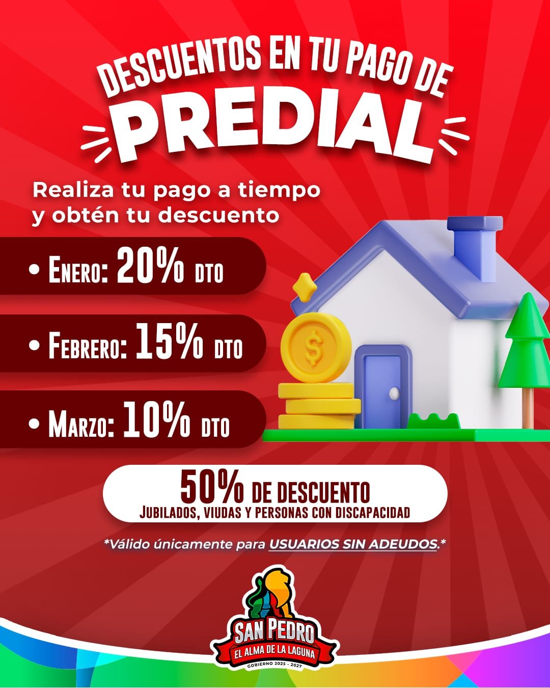 Entendiendo los retos que trae consigo el inicio de aรฑo, el Gobierno Municipal invita a la ciudadanรญa a aprovechar los beneficios por el pago oportuno del Impuesto Predial. Mรกs que una contribuciรณn, este esfuerzo compartido permite seguir transformando a San Pedro en el hogar que todos merecemos.