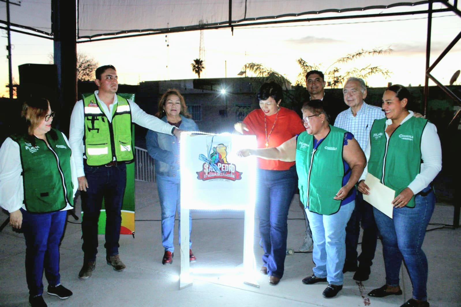 San Pedro, Coahuila. – Con un firme compromiso por la seguridad y el bienestar de las familias sampetrinas, la alcaldesa Brenda Cecilia Güereca Hernández encabezó la entrega de obras clave en el ejido San Miguel, transformando el entorno comunitario mediante la rehabilitación integral del alumbrado público y la techumbre local.