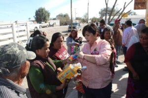 Más allá de la gestión administrativa, la alcaldesa estrecha lazos con las familias del ejido Flores Magón, llevando alegría a la niñez y escuchando de viva voz las necesidades de la comunidad