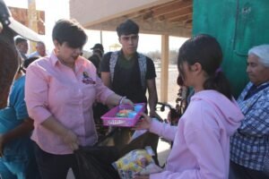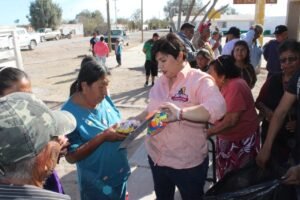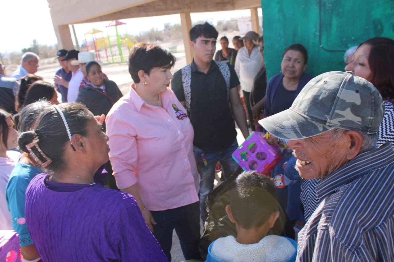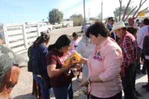 Más allá de la gestión administrativa, la alcaldesa estrecha lazos con las familias del ejido Flores Magón, llevando alegría a la niñez y escuchando de viva voz las necesidades de la comunidad