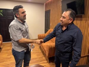 FRANCISCO I. MADERO, COAHUILA.- Con el fin de estrechar la colaboración en beneficio de las familias más vulnerables de la región, el alcalde de Francisco I. Madero, Félix Ramírez Hernández, sostuvo una reunión de trabajo en su despacho con el delegado de Bienestar en Coahuila, Américo Villarreal.