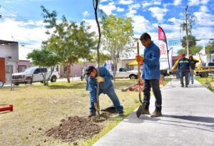 Detalló que las plazas intervenidas se equipan con juegos, bancas, ejercitadores, además de acciones de reforestación, riego por goteo y triturado vegetal, entre otras.
