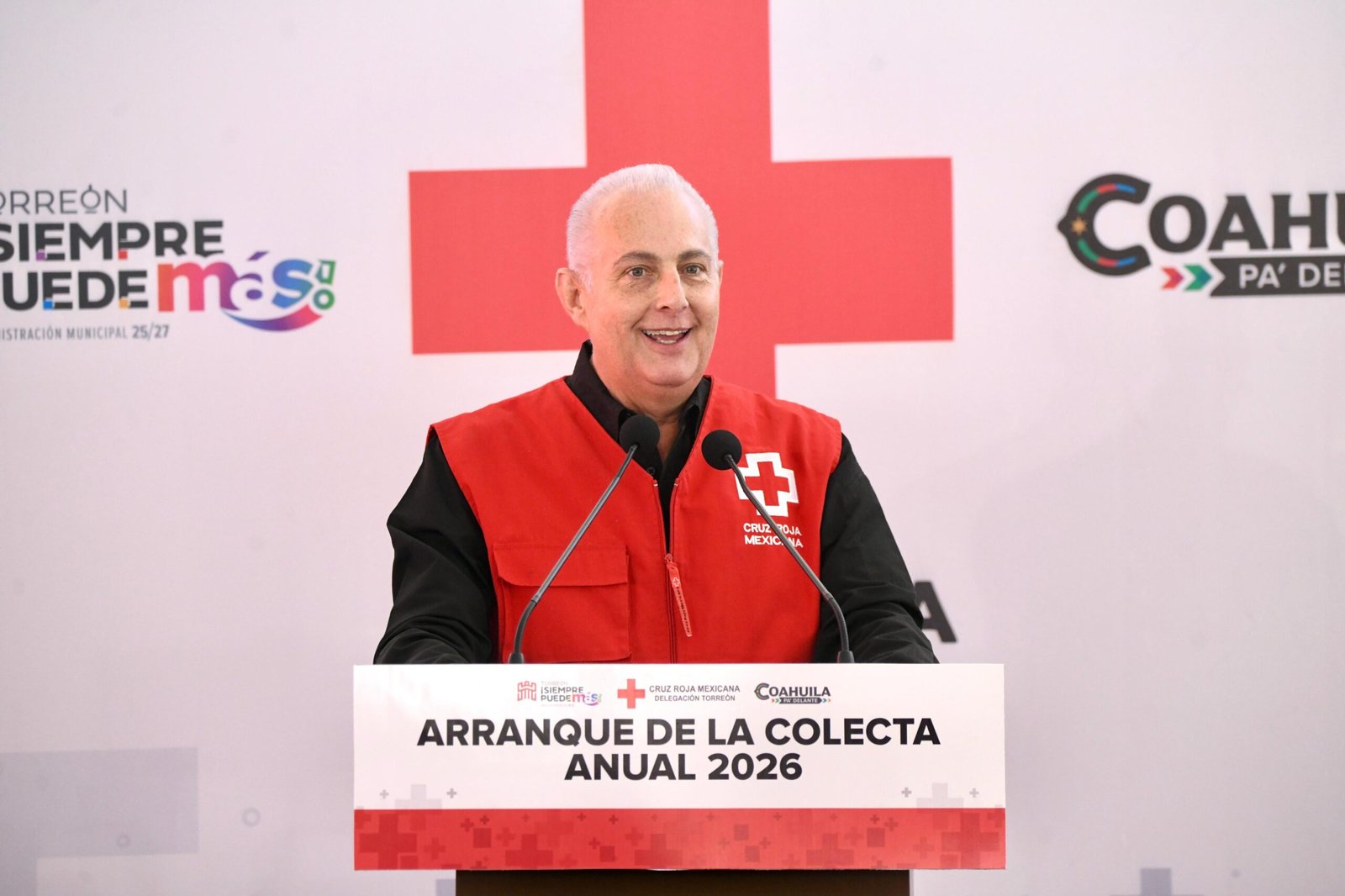 Torreón, Coahuila. – Esta mañana el alcalde Román Alberto Cepeda González, e integrantes del Consejo de Administración de la Cruz Roja Mexicana, Delegación Torreón, pusieron en marcha la Colecta Anual 2026 que este año lleva el lema “Esto que ves, lo hacemos juntos”.