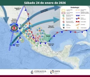 De acuerdo con los pronósticos, a partir de este viernes 23 de enero y durante el fin de semana, la tercera tormenta invernal, en interacción con un río atmosférico, los frentes fríos número 30 y 31, así como una masa de aire ártico, ocasionarán condiciones invernales principalmente en el norte del territorio nacional.